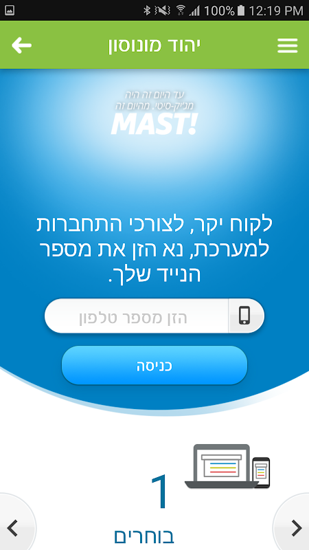 בעדכון זה, עם עליית האפליקציה תעברו לדף בו תקבלו הסבר וקישור לאפליקציית MAST