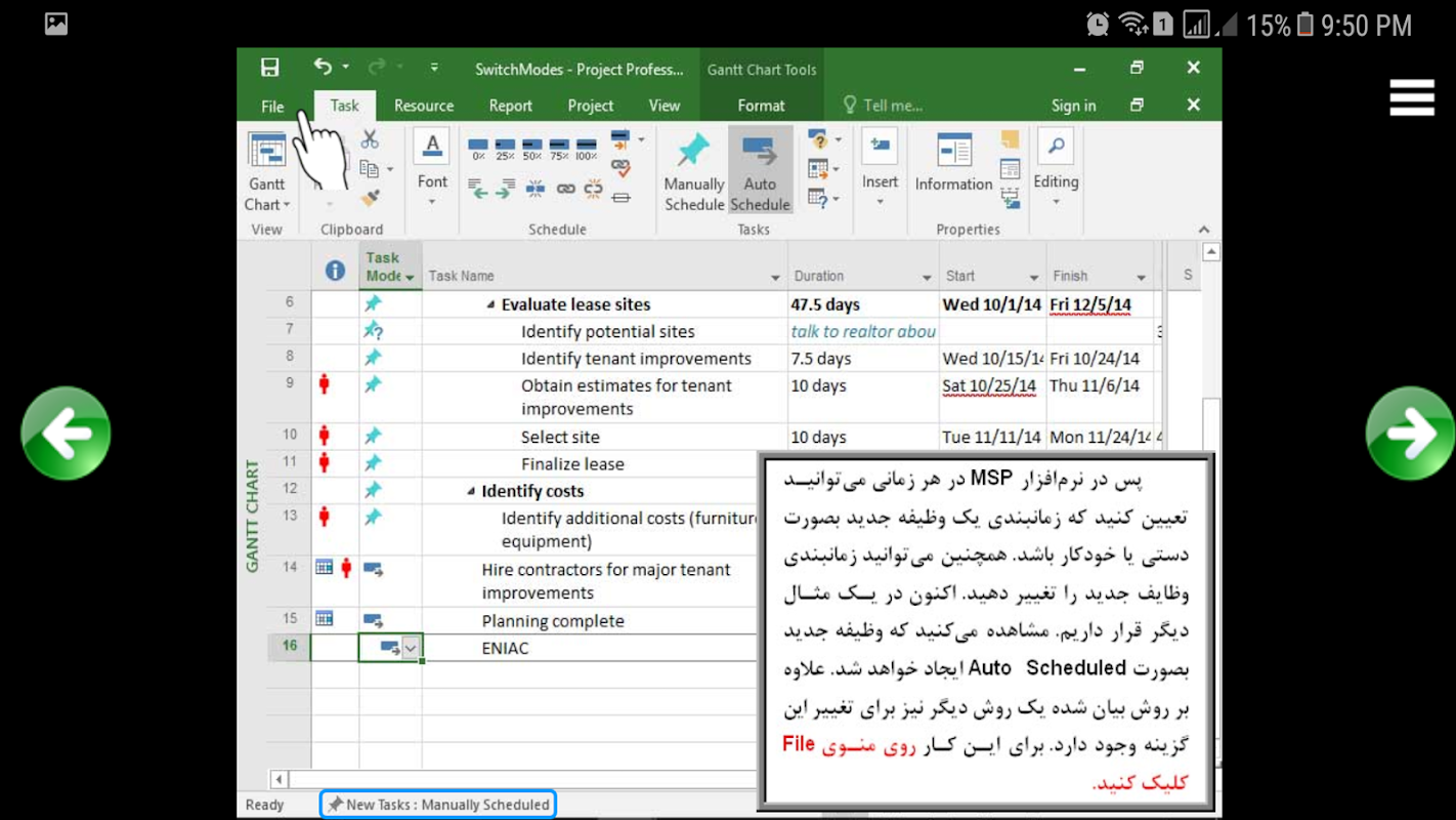 tutoriales interactivos con audio y texto en persa MS Project 2016 - la primera, segunda y tercera - de forma gratuita