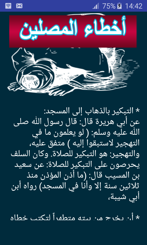 أخطاء المصلين أو أخطاء الصلاة هو إذن تطبيق يساعدك على أداء الصلاة بالطريقة الصحيحة إن شاء الله. نوضح فيه بعض الأخطاء الشائعة في الصلاة و الوضؤ و كذلك الأوقات المنهي عنها عن الصلاة.