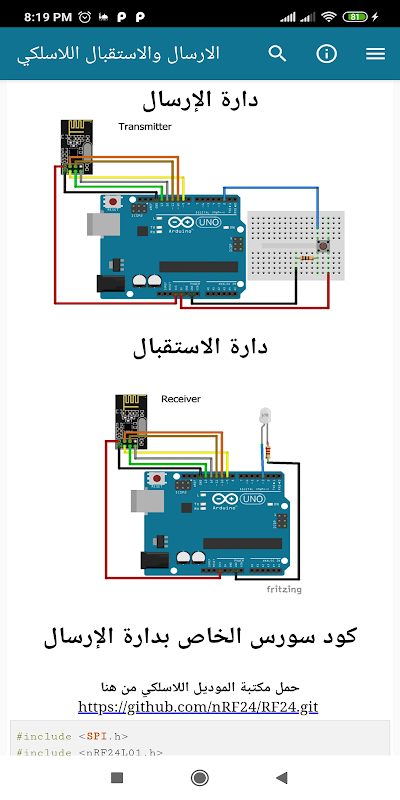 La aplicación Arduino Basics funciona sin una conexión a Internet que contiene lecciones sobre cómo programar y conectar Arduino, además de proyectos listos con códigos (códigos de software)