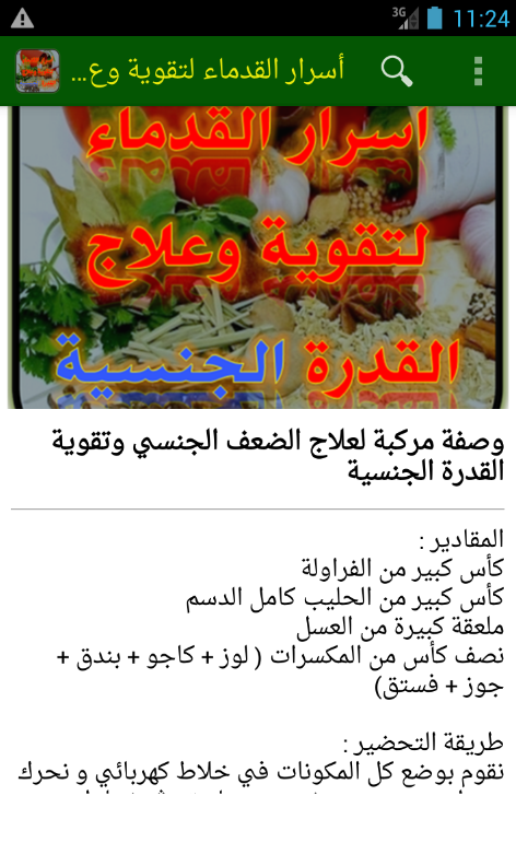 سوف تجدون في هذا التطبيق عدة وصفات وأسرار رائعة لزيادة القدرة الجنسية لدى الرجل والمرأة وكل هذا بوسائل متاحة في المنزل فقط، لكن قبل ذلك اليك هذه المعلومات :