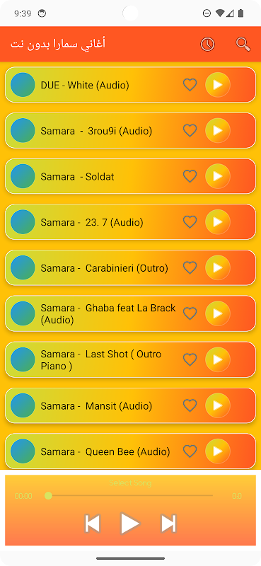 La app "Canciones de Samara sin Internet" es única para los fans del rap tunecino y del joven artista Samara. Incluye una colección de sus canciones más famosas y recientes en alta calidad y sin necesidad de conexión a internet. Ya sea que estés de viaje, en casa o en el gimnasio, puedes disfrutar de la música emocionante y única de Samara con solo tocar un botón.