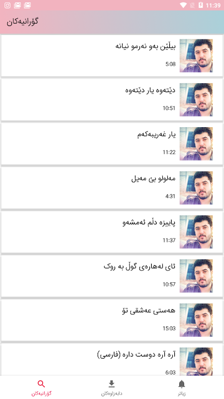 لەم ئەپلیکێشێنەدا ئێوه زیاتر له 150 بەرهەمی ئەم هونەرمەنده تان هەیه که دەتوانن گوێبیستی بن