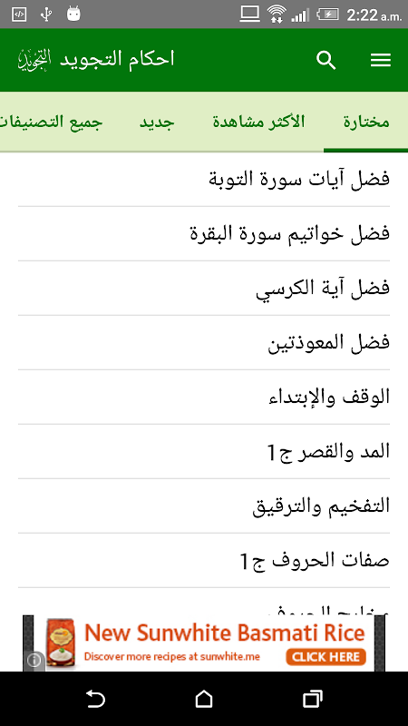 يحتوي تطبيق احكام التجويد على كافة قواعد التجويد اللازمة لتعلم القراءة الصحيحة للقرآن الكريم حيث حرصنا في التطبيق على ذكرجميع أحكام وقواعد التجويد و فضل سور و ايات القرآن للحث على قراءة القرآن بالطريقة الصحيحة حيث يحتوي التطبيق على التصنيفات التالية: