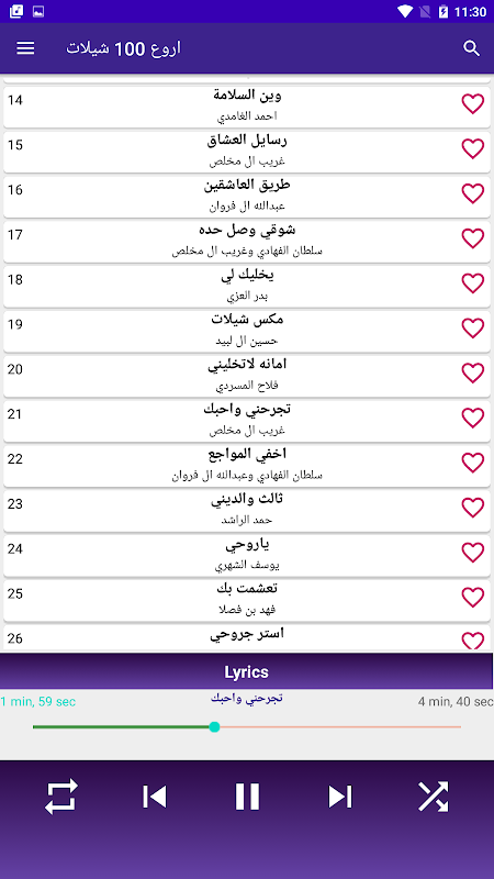 ✅ يحتوي على كلمات كل اغنية مع اسم الفنان الخاص بالشيلة