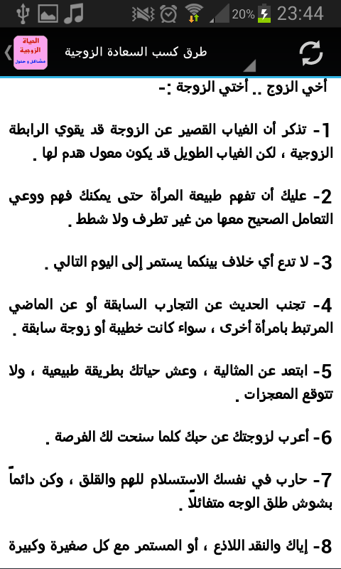 يحتوي تطبيق الحياة الزوجية على العديد من الحلول و المشاكل التي تصادف الازواج في حياتهم الزوجية