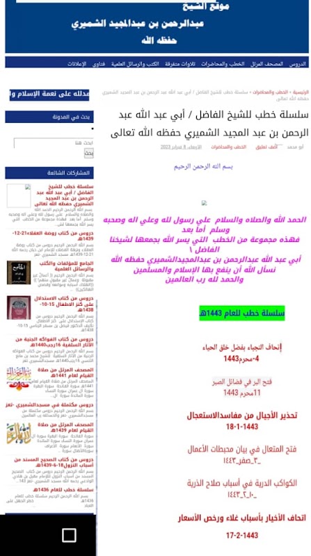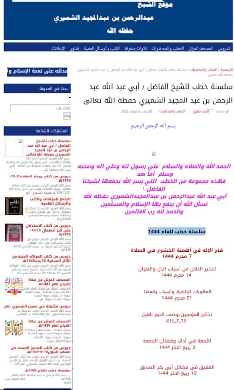 Una colección de sermones que Dios ha querido recopilar de nuestro honorable Jeque/Abdul Rahman Al-Shamiri.