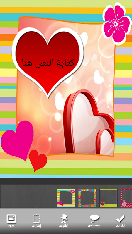 تطبيق الكتابة على الصور اون لاين طريقة جميلة وجديدة للتعبيرعن مشاعرك مع أصدقائك أو حبيبك ويحتوي على تأثيرات مدهشة الخاصة بكتابة النص على الصور الخاصة مع خطوط كتابة مختلفة يمكنك إختيار ما يعجبك منها ، يمكنك استخدام هذا التطبيق لخلق تأثيرات وإطارات متنوعة على الصور والكتابة عليها وجعل الصورة أكثر جاذبية عن طريق إضافة ملصقات توضيحية رائعة.