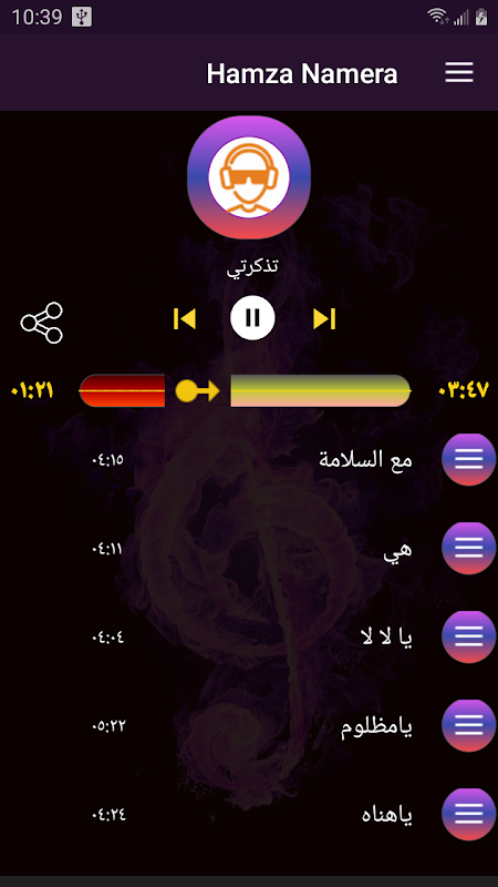 Las canciones más bellas de Hamza Namira con características simples que permiten al usuario escucharlas.