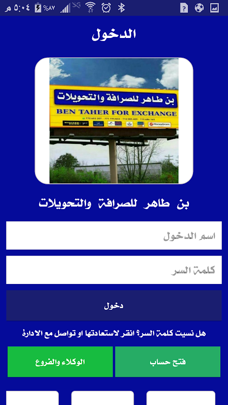 Le ofrecemos la aplicación de "Intercambio y remesas Bin Taher" lo más distintivo y diverso en la prestación de servicios y facilidad de uso, la aplicación diseñada específicamente con la última tecnología de software para dispositivos Android, respaldada por la función de visualización dinámica, y la provisión de infinitos servicios electrónicos diversos, exclusivos e innovadores exclusivos por los expertos de la aplicación "Intercambio Bin Taher “Pioneros en aplicaciones inteligentes. Con la aplicación "Intercambio y transferencias de Bin Taher" le dará control total, para administrar su saldo y cartera, y transacciones electrónicas de pagos, bonos e informes. La aplicación Bin Taher Exchange & Remittance es fácil de usar y rápida de implementar. También es compatible con una cabina de ventana única para todas las redes, de una manera más fácil y rápida.