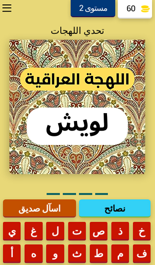 Dialect Challenge Game es un juego que pone a prueba tu comprensión y comprensión de más de 15 dialectos árabes diferentes, y aunque es un juego entretenido, ayuda al jugador a aprender sobre diferentes dialectos árabes y te ayuda a entender el dialecto de tus amigos de diferentes Los países árabes y los dialectos dentro del juego varían a 15 dialectos, y los dialectos árabes son Arabia Saudita, Emiratos, Kuwait, Omán, Bahrein, Egipto, Marruecos, Yemen, Irak, Argelia, junto con muchos otros dialectos.