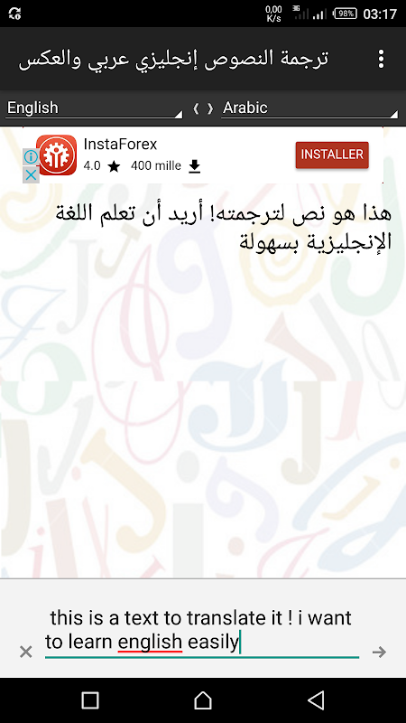 También puede invertir la elección de la traducción, es decir, la traducción del árabe al inglés o del francés al inglés con solo hacer clic en un botón.
