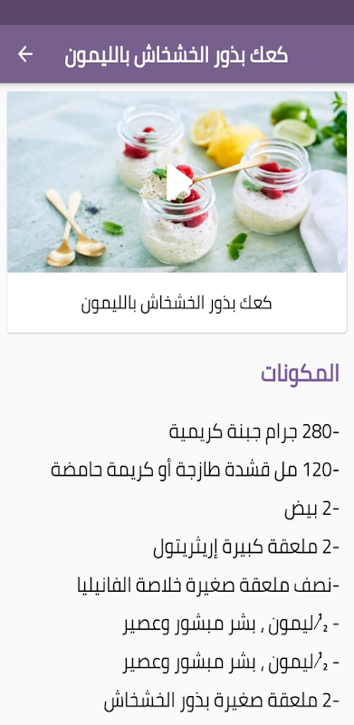 كما يقدم التطبيق طريقة عمل تشيز كيك كيتوني موضحة بالصور وبعضها بالفيديو