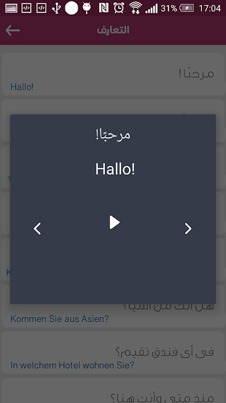 تطبيق تعلم اللغة الالمانية بالصوت و الصورة ، يمكنكم من تعلم اللغة الالمانية بسرعة و بسهولة وبدون معلم، وأيضا سهل الاستخدام و بجودة صوت عالية ، و يعمل من دون الحاجة إلى انترنت.