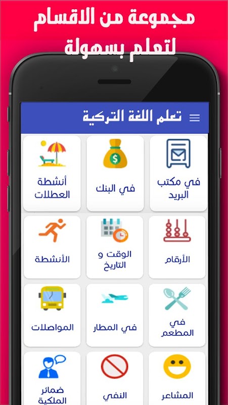 aplicación de aprendizaje de idiomas turco es una aplicación completa que contiene varias secciones y varias conversaciones diferentes en función de cada caso, todo este sonido en facilitar el aprendizaje sin Internet ya que esta aplicación también contiene unas formas sencillas y fáciles de agregar nueva comunicación más fácil de pronunciar palabras.