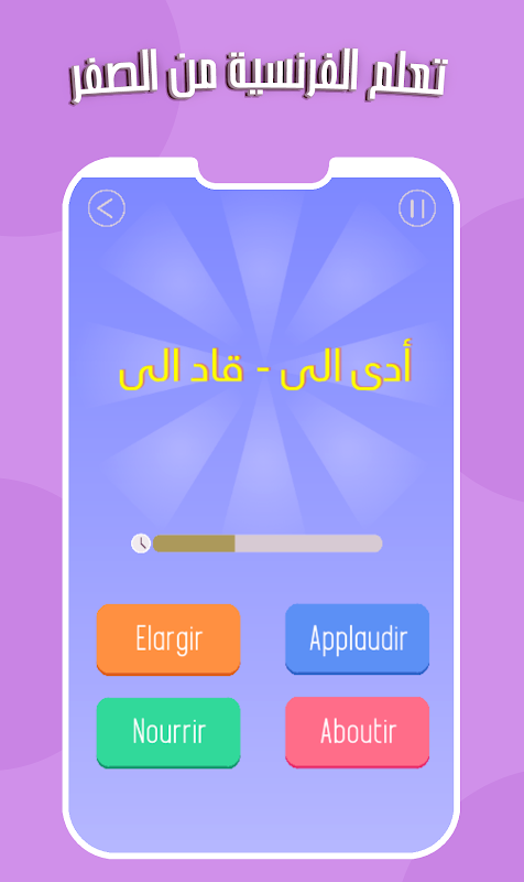Aprende francés para niños desde cero hasta la profesionalización en árabe con una aplicación y un juego para aprender francés fácilmente para principiantes sin Internet con sonido e imagen. La aplicación de aprender el idioma francés fácilmente para principiantes es una aplicación que contiene un grupo de varias secciones para facilitar el proceso de aprendizaje para niños y adultos.