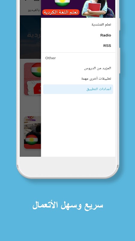هذا التطبيق سوف يساعدك على تعلم اللغة الكردية عن طريق دروس بالفيديو و دروس القواعد