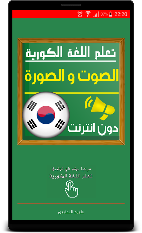 تطبيق تعلم اللغة الكورية صوت و صورة ، يمكنكم من تعلم اللغة الكورية بسرعة و بسهولة وبدون معلم، وأيضا سهل الإستخدام و بجودة صوت عالية ، و يعمل من دون الحاجة إلى انترنت.