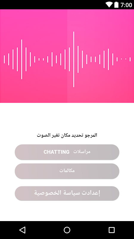 يمكنك أيضا التراسل بصوت فتاة أو رجل ألي او عجوز أو رجل عند الاتصال يسمح لك بتغيير صوتك عند الاتصال غير صوتك في الوتس أب أو صوتك في فيس أو صوتك في fb أو غير صوتك في محدثات الواتس أب أو أديو هات الوتس أب غير صوتك في أدوات الوتس أب وغيرها الكثير