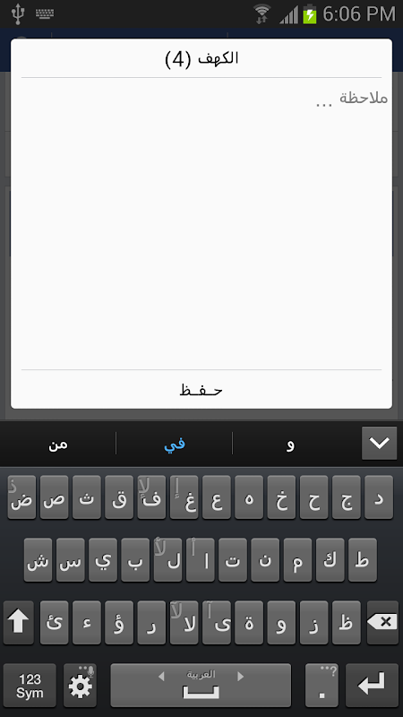 تفسير القران الكريم كامل بدون انترنت وفيه فهرس السور وفهرس آيات السورة المختارة وإمكانية البحث في القرآن الكريم مع إمكانية كتابة ملاحظة على إعراب آية معينة وإمكانية وضع علامات متعددة على