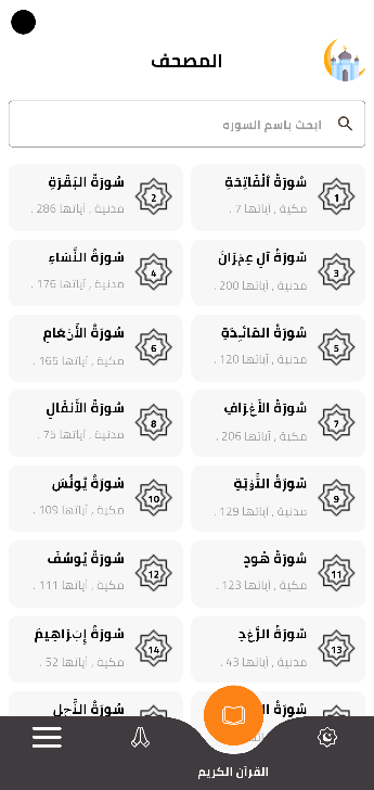 Explora los capítulos del Sagrado Corán fácilmente, con una pantalla clara y práctica para leer, sin necesidad de conexión a internet.