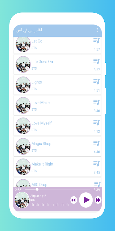 La aplicación BTS Songs, una aplicación que te permite escuchar todas las canciones nuevas y viejas de BTS sin Internet y sin necesidad de buscarlas, ya que ahora están en tus manos, puedes escucharlas cuando quieras. Ven encendido, descargue la aplicación BTS Songs ahora