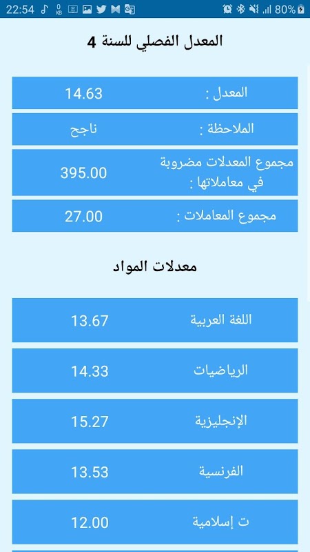 Una aplicación que calcula muchos promedios de estudio para todos los años de etapa intermedia en Argelia