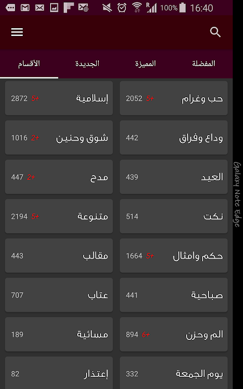 و رسائل مدح و رسائل نكت و رسائل مقالب و رسائل رمضان و رسائل يوم الجمعة و رسائل حكم و امثال و رسائل عتاب و رسائل يوم الجمعة