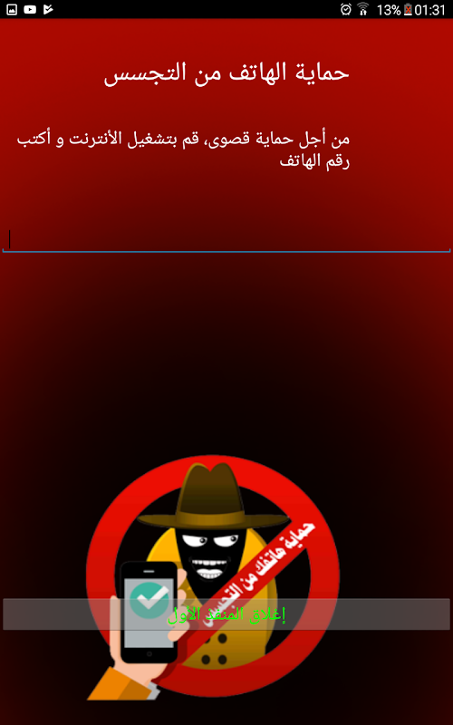 ا اريد ان اوصله لك من هذا التطبيق هو أن الحماية من التجسس على الهاتف وقاية و ليست علاج فمهما حملت من برامج حماية الهاتف من التجسس لن تغنيك شيئا فقط تذكرك بأمر مهم جدا ان هناك من يتربص بك و لايكره اختراق الواتس اب والتجسس على الفايسبوك و اختراق هاتفك.فخذ حذرك.