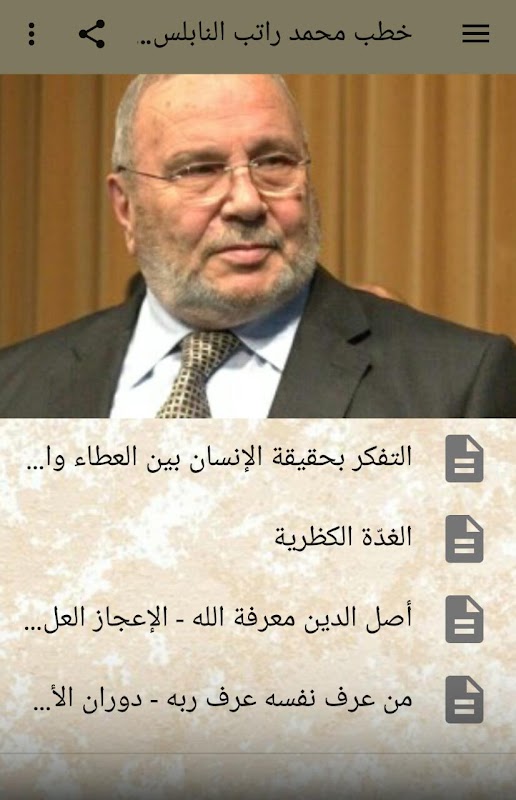 كما يحتوي التطبيق على اروع خطب الشيخ محمد راتب النابلسي