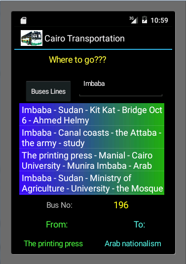 Líneas de transporte público de autobuses en El Cairo: estación de salida, estación de llegada y número de autobús