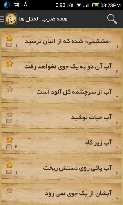 ● به اشتراک گذاری ضرب المثل ها از طریق تلگرام, بلوتوث, ایمیل, پیام کوتاه و ...