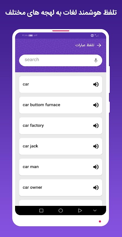 ✔️ Busque entre palabras en inglés y persa con solo cambiar el teclado