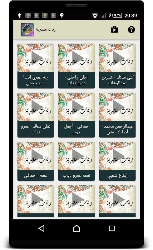 تطبيق رنات مصرية روعة بدون أنترنت يضم مجموعة من رنات الأغاني المصرية الفريدة من نوعها و المشهورة لأشهر و أروع الفنانين بجودة عالية.