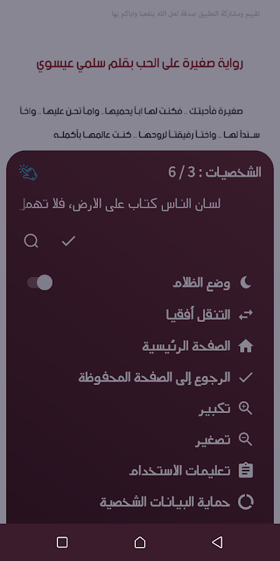 ✔امكانية تكبير وتصغير حجم الصفحات للقراءة بشكل افضل