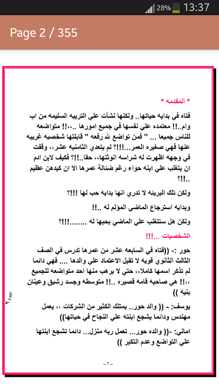 La novela habla de una niña al comienzo de su vida ... ¡Ella creció con la educación adecuada de un padre y una madre ...! Ella confiaba en sí misma en todos sus asuntos ... modesta para todas las personas ... conoció a una persona extraña acerca de ella, es joven ... no excedió los dieciocho años, y se puso de pie en la cara, mostrándole la ferocidad de su feminidad, ¿en serio? ¿Cómo puede Ibn Adam vencer a su hijo Eva, a pesar de su poca edad, pero su trama es genial ...? ¡Pero esa mujer inocente no sabe que ella es el comienzo de su amor! Y el comienzo de recordar el pasado doloroso para él ... !! ¿Pero superarás el pasado con su amor por él ...?