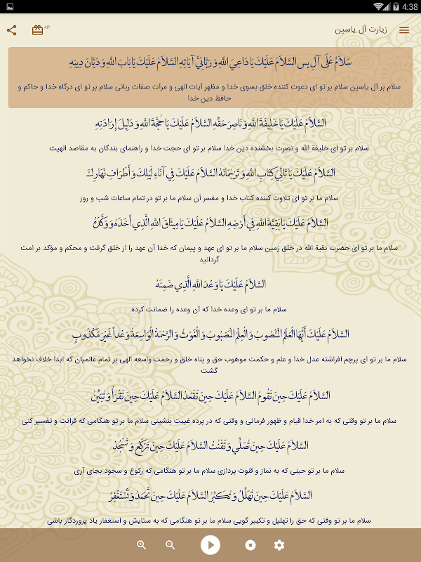 Ziarat Al Yasin con la reproducción de audio y traducción de Farsi