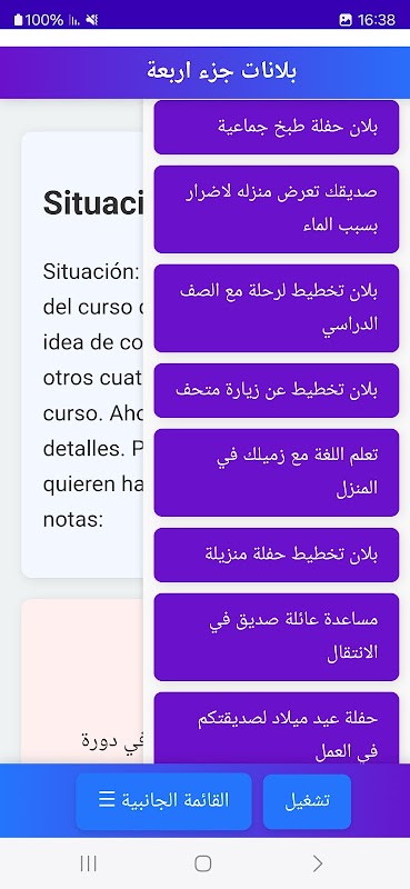 🔄 Traducción instantánea y precisa: Todas las palabras y oraciones en español están traducidas al árabe, para facilitar la comprensión y la memorización.