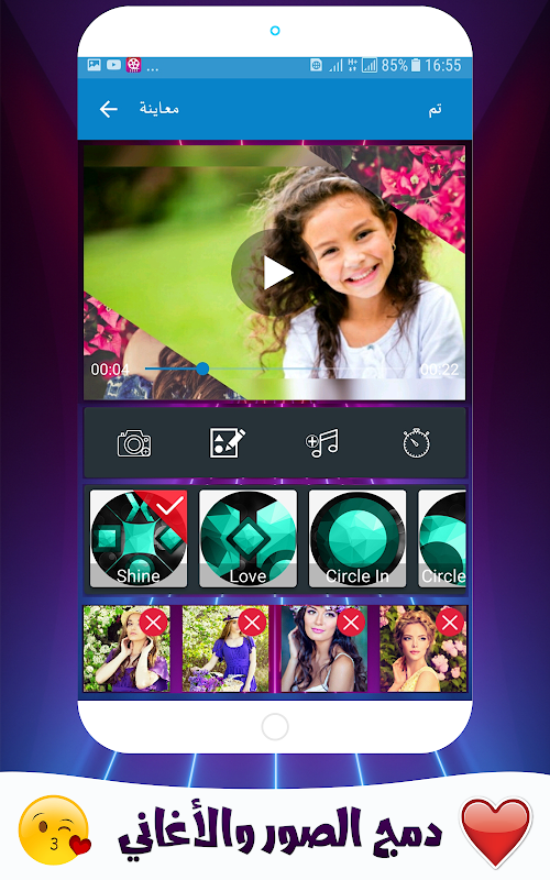 دمج الصور مع الاغاني و انشاء فيديو يتيح لك امكانية تعديل الصور والتحكم بحركتها