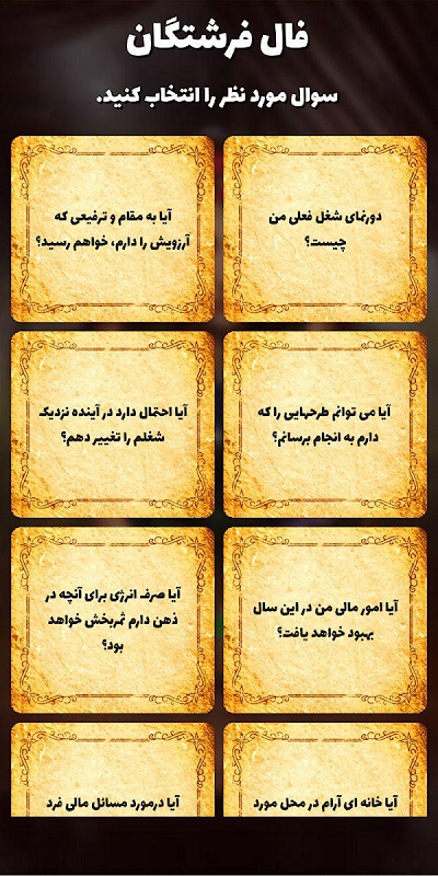 - امکان به اشتراک گذاری تمامی فال ها به صورت تصویری