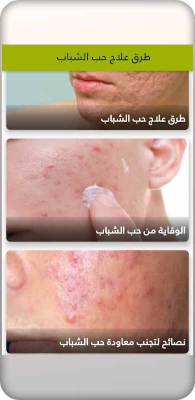 تطبيق طرق علاج حب الشباب هو تطبيق مفيد جدا من أجل التعرف على آلية ظهور حب الشباب وكيفية التخلص منه وعلاجه بوصفات طبيعية وبطرق بسيطه جدا لا تحتاج إلى وقت او جهد او حتى المال تطبيقنا يحتوي على التالي