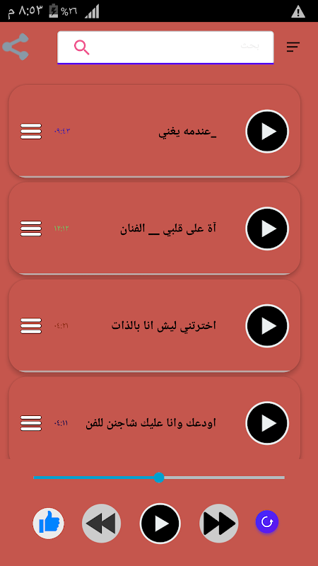 Ahora hay una aplicación de canciones de Nader Al Jaradi en una sola aplicación sin necesidad de una red de Internet.
