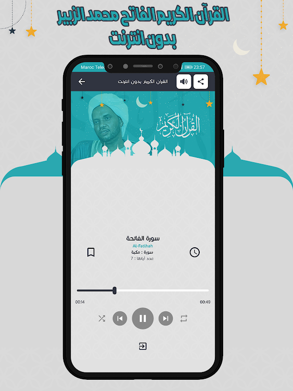Ahora puedes usar la aplicación con facilidad y escuchar las suras del Noble Corán con la voz del Jeque Al-Fateh Muhammad Al-Zubayr y vivir un maravilloso estado de fe en el que profundizarás en los significados del Noble Corán, disfrutando de la voz del Destino Sheikh Muhammad Al-Zubayr que te transportará a otro mundo con su distintiva voz.