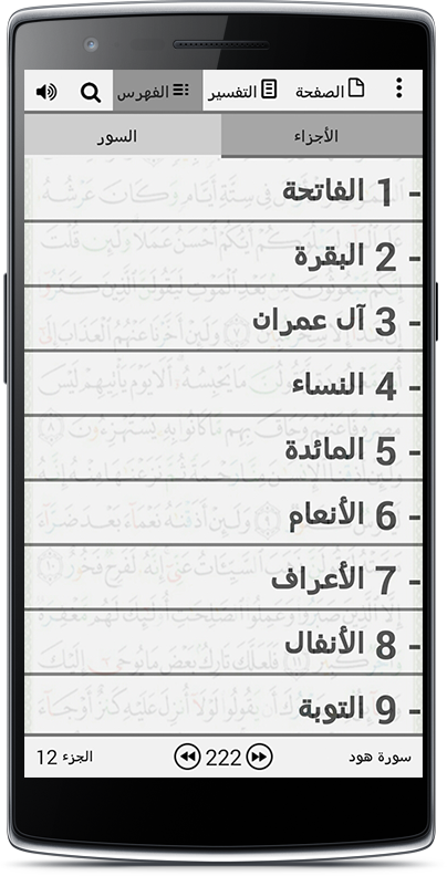 Una maravillosa aplicación para leer el Corán en el teléfono con la entonación y la interpretación de las normas y la declaración