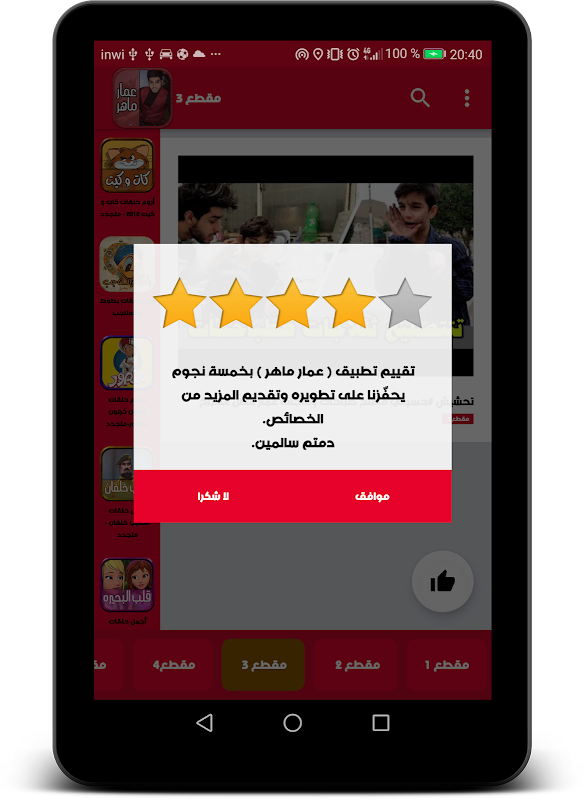 نقدم لكم مقاطع تحشيش عمار ماهر، ممثل شاب عراقي يقوم بتسجيل فيديوهات مضحكة على اليوتيوب ، او بعبارة أخرى، مقاطع تحشيش ، في هذا التطبيق إخترنا لكم أحدث الڤيديوهات المضحكة العراقية عمار ماهر ، هذا التطبيق يوفر لكم عدة إمتيازات منها : إمكانية وضع فيديوهاتك المفضلة في لائحة المفضلة ، وضع علامة على الڤيديوهات التي سبق لك وشاهدتها ، بالإضافة إلى التوصل بكل تحديث أو ڤيديو، جديد عمار ماهر ، نتمنى أن يعجبكم تطبيق مقاطع عمار ماهر ، لا تبخلوا علينا بتقييم بسيط للتطبيق بالإضافة إلى تعليق كي تساعدونا على تطوير التطبيق .