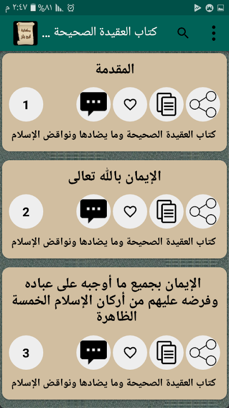 ◉ La posibilidad de copiar y compartir cualquier parte específica de la sección a través de una presión prolongada.