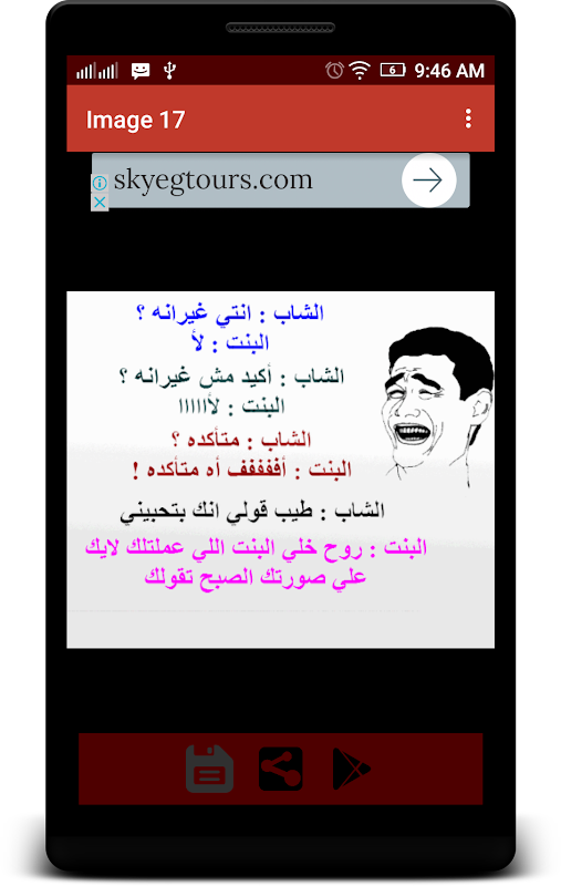 تطبيق نكت بدون انترنت أكبر تطبيق على المتجر خاص ب نكت عالماشي ونكت عالطاير وفرفش وانسى همومك مع احلى تطبيق نكت بدون نت نكت قصيرة ونكت لبنانية ونكت منوعة وسؤال وجواب كلها موجودة في تطبيق صور مضحكة جدا نكت للمتزوجين للكبار والصغا