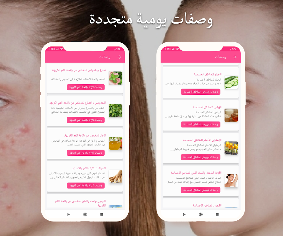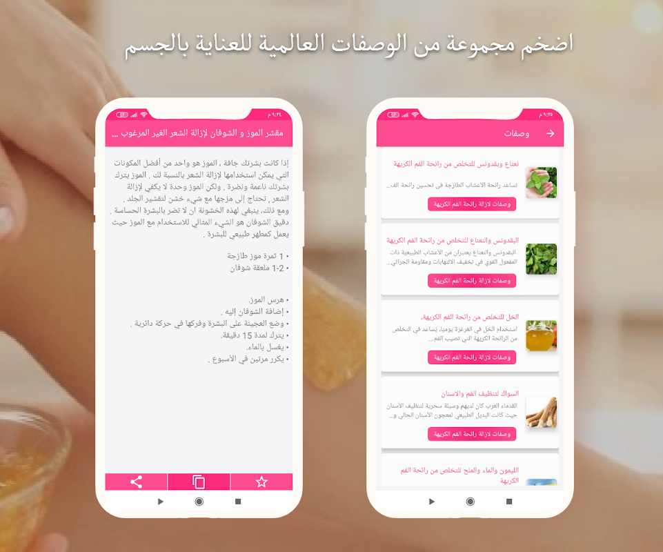 Una aplicación árabe que incluye una enorme enciclopedia de recetas de belleza y salud para todas las partes del cuerpo.