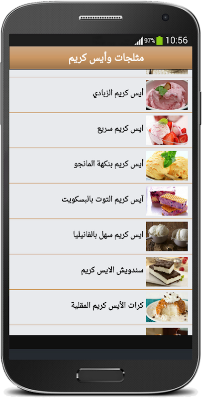 يحتوي تطبيق وصفات مثلجات و ايس كريم منزلية على العديد من الوصفات :