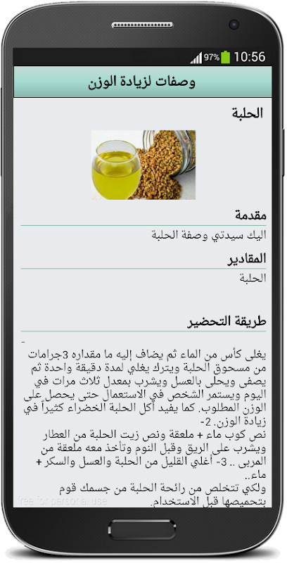يحتوي تطبيق وصفات مجربة لزيادة الوزن بسرعة على معلومات متنوعة ومحددة تخص ما يلي :